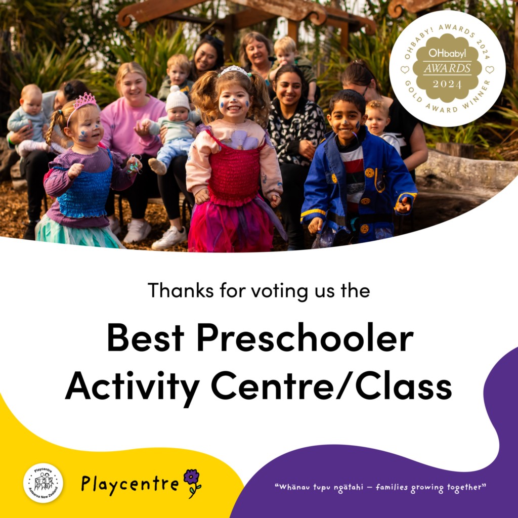 Playcentre has won the Gold Award for Best Preschooler Activity Centre/Class in the OHbaby Awards 2024.